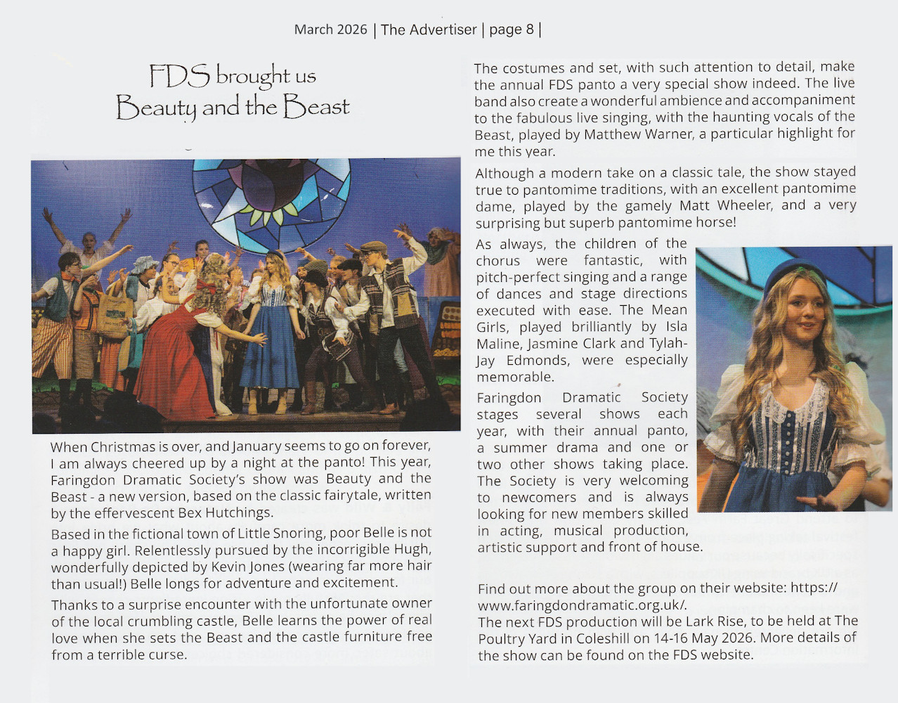 Be our guest in Little Snoring, where Belle is not living her best life. No friends, no good books and chased relentlessly by the repugnant Hugh. Belle is looking for adventure and boy, does she find it! Drawing inspiration from the iconic animated film; enchanted castles, living furniture and a brooding Beast all beckon in this one of a kind adventure. With dad jokes, poo jokes and a romance for the ages there is something for everyone in this tale as old as time retold.
